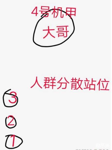 要点:尽量以1号机甲为中心,形成一个以1.2.4号机甲为掩体的[墙],挡住大团人群。