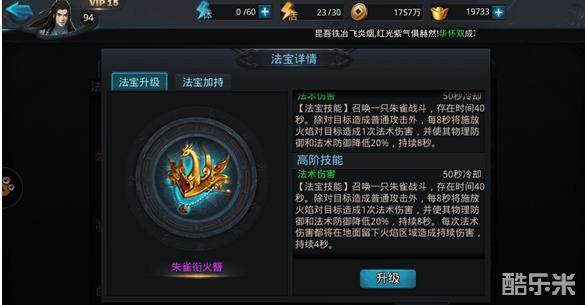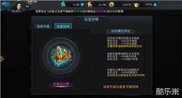 1、法术强度加成,以94级为例,加成1.5万强度,这与15紫法宝的加成类似。