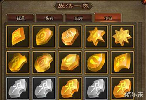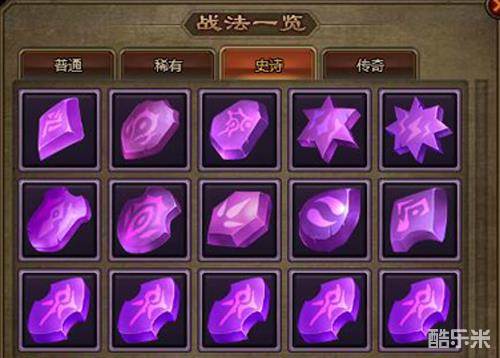 史诗战法,我个人认为这部分是我们值得关注的,中小r都可以把目标集中在这部分,这部分战法出全和兑换是在我们精力范围内,可以做到的,而且效果也比较明显,尤其是后2排的10个战法,金色是比较难转到的,可以用紫色战法,综合能力和战斗力兼具。