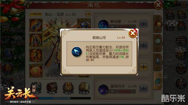 【箭破山河】这个技能一样具备高伤害,蓄力时间自己视情况而定。这也是一个生存空间的体现,击退加减速,非常的有效。小技巧:在【疾追风】冷却的时候,使用这个技能保障生存是非常不错的。