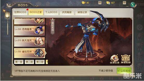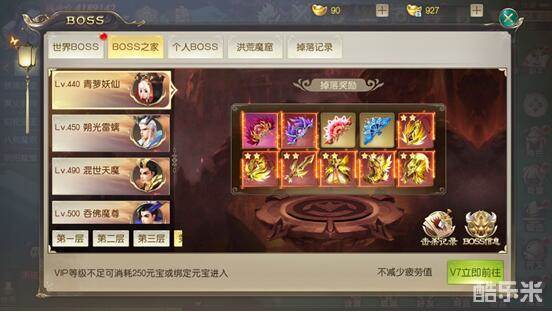 BOSS之家共四层,层数越高BOSS的难度越大,掉落的道具装备也越好,进入BOSS之家各层需要消耗相应数量的绑元或者达到一定的vip等级即可免费进入。在BOSS之家内无疲劳度限制,但是要注意的是如果花费元宝进入的话,一旦退出地图再想重新进入就要再次消耗元宝了噢,因此记得每次尽量在地图中把能刷的BOSS全刷一遍再离开。