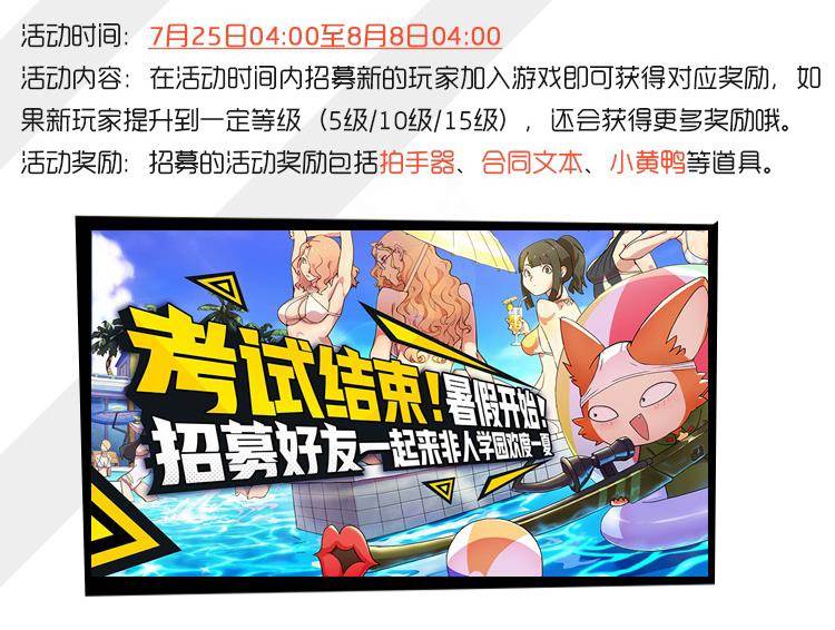 注意注意,夏日祭期间,成功招募好朋友进入游戏,除了享受“好友招募”的原有福利,还将获得额外奖励哦!