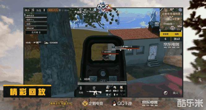 KB先是偷袭了SDG战队,但是因为SDG MILK爬到房子后面,所以没有成功,随后,KB开始迎战COMY战队,中途还遇到了VG战队的偷袭,不过KB的防守很稳健,还是守住了自己,并将来袭的VG队员击倒,随后的战斗中,KB趁乱冲到了房屋的顶层,并利用分散攻击的战术打出精彩配合,成功团灭COMY队!