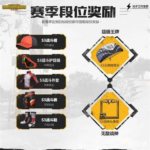 日前,《绝地求生:刺激战场》S3赛季正式开启,掀起全民吃鸡冲榜热潮。S3赛季将持续至9月,玩家的赛季积分将根据S2赛季结算分进行一定程度的继承,新赛季同样拥有单人、双人、四人三种模式的排位积分,玩家可以选择任意喜爱的模式进行游戏。《绝地求生:刺激战场》S3赛季为玩家准备了更加精美的赛季专属奖励,运动范十足的S3套装、达到超级王牌段位的S3王牌降落伞,都具有很强的收藏价值。当然,如果玩家冲至无敌战神段位,还可获得S3战神头像框,无时不刻彰显大神风范!