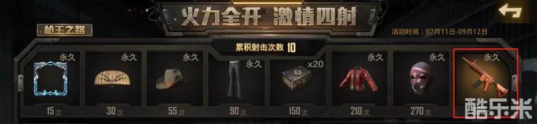 此外亦有累积射击次数的固定奖励,除了牛仔帽、沙漠定制套装等稀有外观,当玩家射击次数达到301次、360次时,更可获得SCAR-L以及M416这两款武器的永久皮肤(精准度清空后,射击次数仍持续累积)!