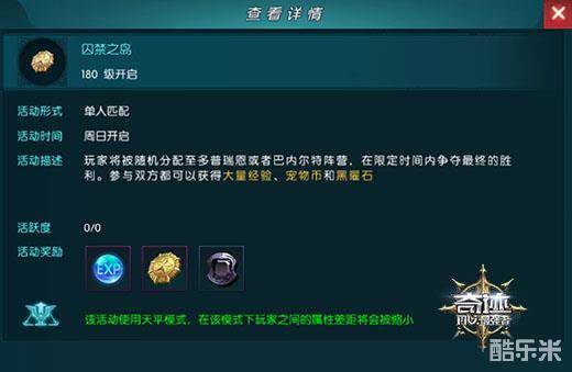 囚禁之岛是《奇迹:最强者》另一个具备天平模式的竞技玩法。与赤色要塞纯粹的玩家战斗不同,囚禁之岛不但考验玩家的PK实力,更需要玩家能够有着足够的战略眼光和配合。在囚禁之岛玩法还没有天平模式之前,这里就是很多玩家逆袭强者的最好战场。而天平模式更是让囚禁之岛成为游戏中最受环境的竞技玩法!