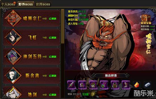 玩家达到指定等级后可通过激战boss面板进入副本挑战个人boss