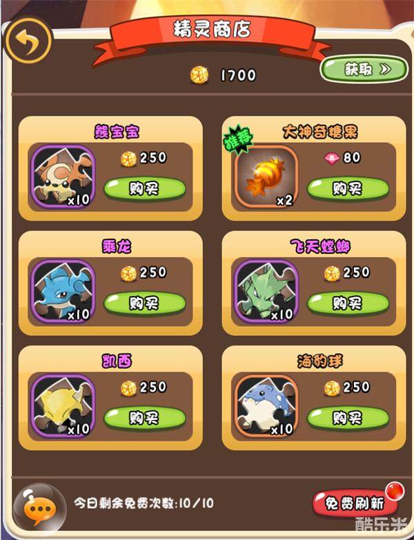 获得精灵可以通过在精灵商店中使用精魂购买精灵碎片合成精灵。