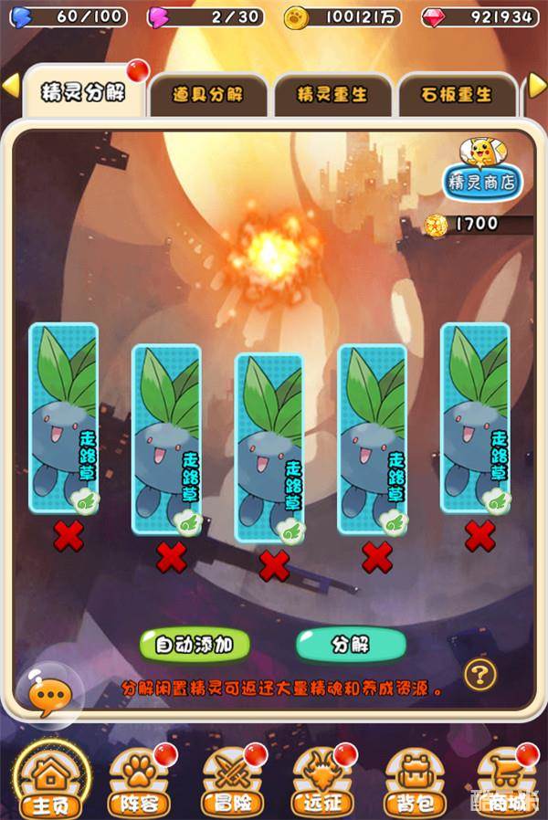 分解不要的精灵就可以获得精灵精魂了,还可以获得金币。