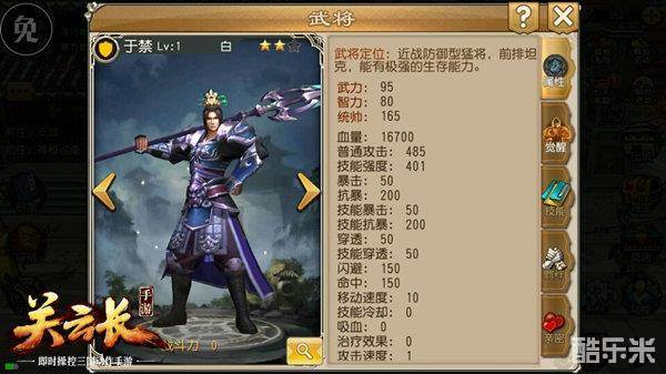 【屈辱而亡】当于禁、曹丕同时上场时,于禁的技能防御增加40%;