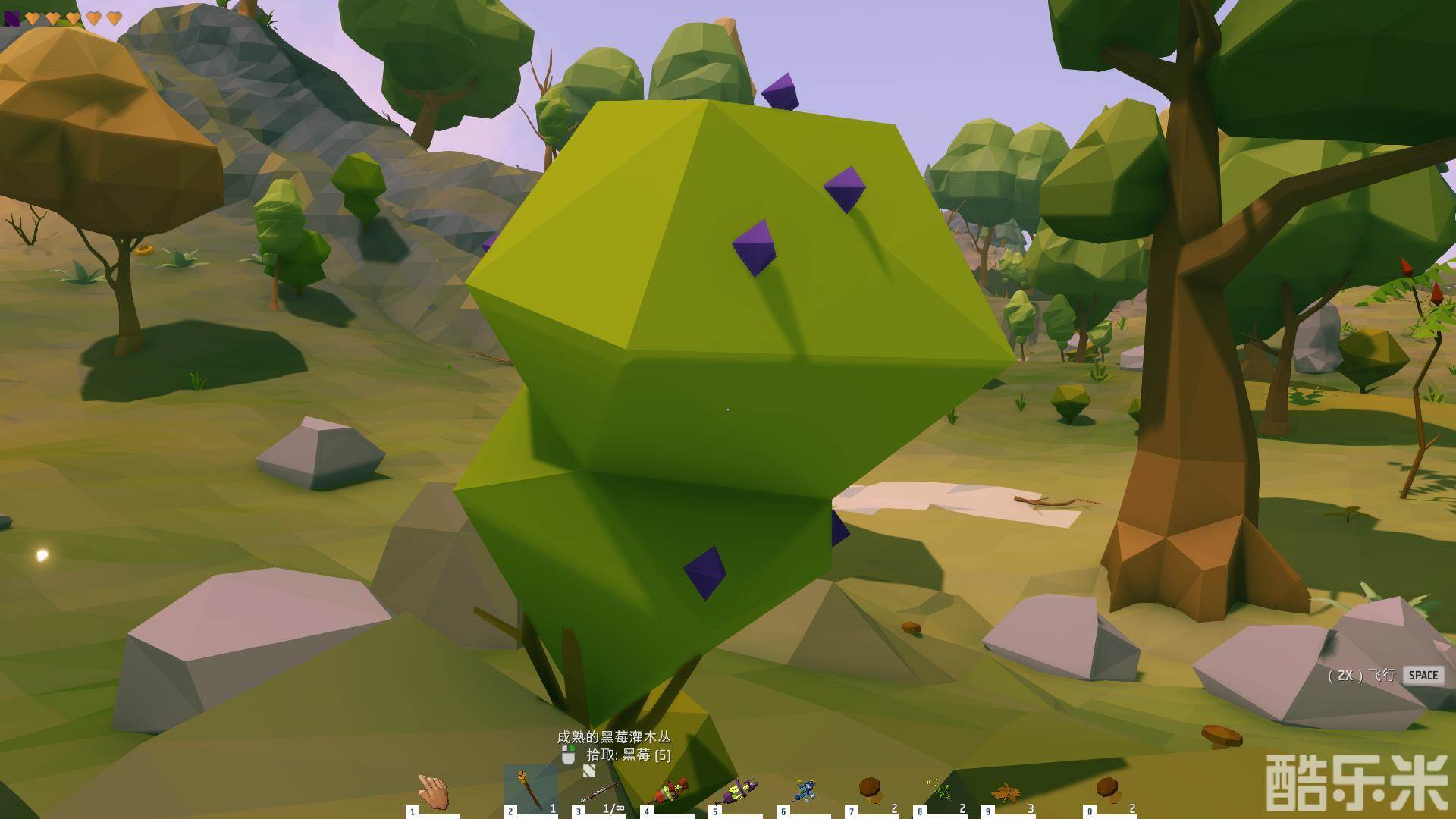 2、有三种果丛,树莓灌木丛、黑莓灌木丛以及接骨木灌木丛。红色的是树莓灌木丛,黑色的是黑莓灌木丛。和热带雨林岛一样,温带岛也存在接骨木。浆果能制作烤水果。