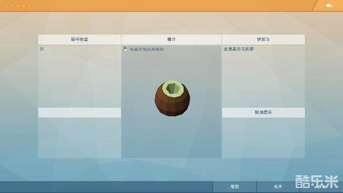 此时就能做出这两种饮品了,绿色椰汁直接通过棕榈树种子和小刀制作,椰汁则是用椰子和小刀制作。椰汁不仅能喝,作为房间的装饰品还能增添一些夏威夷风情哦。