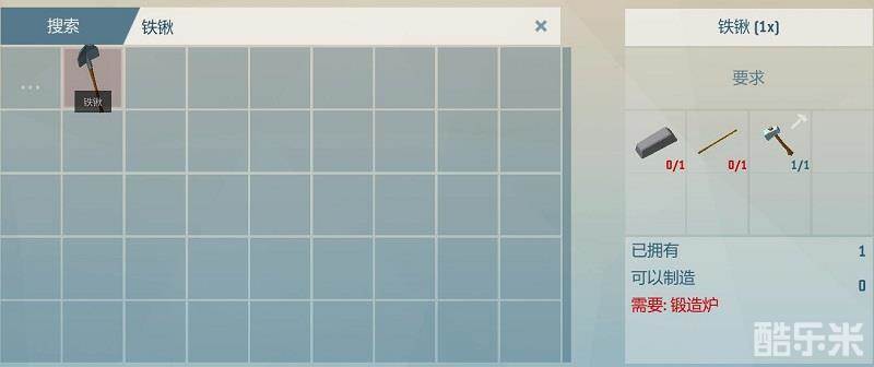 采集效率问题,在进入到铁器时代大大得到缓解。锻造炉制造的铁锹在用来配合铁铲挖地整地之余,还可以拿来挖矿,效率比较高,但是无法同时作为武器使用。