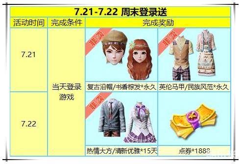 7.21-7.22,周末登录游戏就能轻松领取永久民国非卖套,更多经典非卖套和5万点券等你来领,不要错过哦~