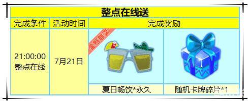 7.21晚21:00整点在线,就能领取非卖饰品和随机卡牌碎片。