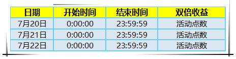 7.20-7.22晚上19:30-22:00,开启双倍经验、GB、冒险收益。小伙伴们不要错过了哦!