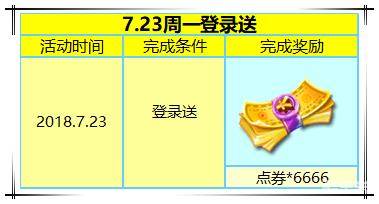 7.23,周一登录游戏即可领取6666点券,希望新的一周66大顺,抽奖变白!