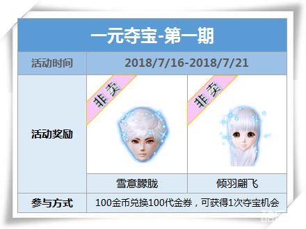 参与方式:支付100金币不仅可以兑换100代金券,而且还可以获得1次夺宝机会!
