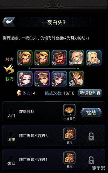 将临天下一夜白头副本在游戏中是一个非常难过的一个关卡,关卡对于玩家的自身战斗力要求非常高,是一个难度较大的关卡。玩家想要通过这个副本关卡,首先要提升自己的战斗力,战斗力越高的副本关卡,对于要求上也会增加。小编建议玩家可以在游戏中选择冻结敌方一个武将,这样可以减少自己武将的伤害,又能保证玩家后排的输出能力,是一个通关副本必备的一个技能。