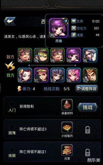 将临天下西施在游戏中是一个难度非常高的一个关卡,西施自身的防御力在游戏中非常高,是一个前排抗攻击的一个武将,而且自身的攻击力和技能辅助能力非常强势,是一个比较难过的一个关卡。小编建议玩家在进行闯关的时候,可以选择用冰封技能来封住西施武将,这样首先清理西施身边高爆发的武将,最后在击杀BOSS西施,这样才可以快速进行通过副本。