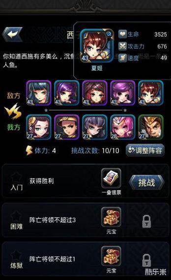 夏姬武将在游戏中是一个法术攻击非常强的一个武将,而且自身的生命值也非常高,是一个比较全能的一个法术攻击武将,这个武将唯一的一个缺点就是武将的品级很低。关于夏姬武将的获取方法也是比较多的,可以通过游戏中的指定副本来获取该武将的碎片,然后在进行合成一个武将,或者在游戏里面的点将系统来进行获取该武将,这个获取方法随机性非常高,是一个花钱的办法。
