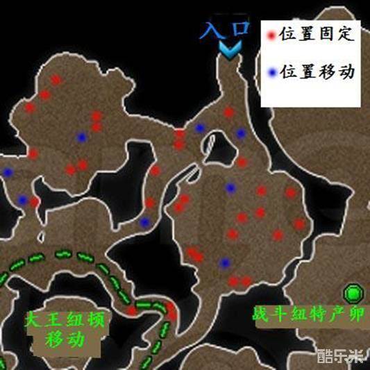 上面图片是怪物出现的位置,也叫刷新地区,掌握怪物出现位置非常重要。在塔兰的普通怪物出现周期是300秒。所以消灭一个位置的怪物后,300秒以后会重生,所以对团员的安全有利。而且如图红点位置出现的怪物是固定的,但蓝点位置的怪物是以就为准侦察周围。