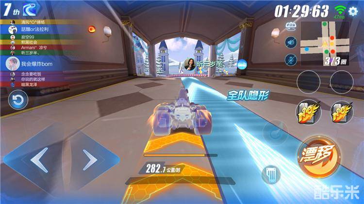 隐身:赛车手们使用隐身后可让自己和队友都进入隐身状态,并获得加速和撞墙集气保护的效果。隐身期间,可穿透其他赛车,每穿透一辆赛车可获得最高速度提升和小喷效果。