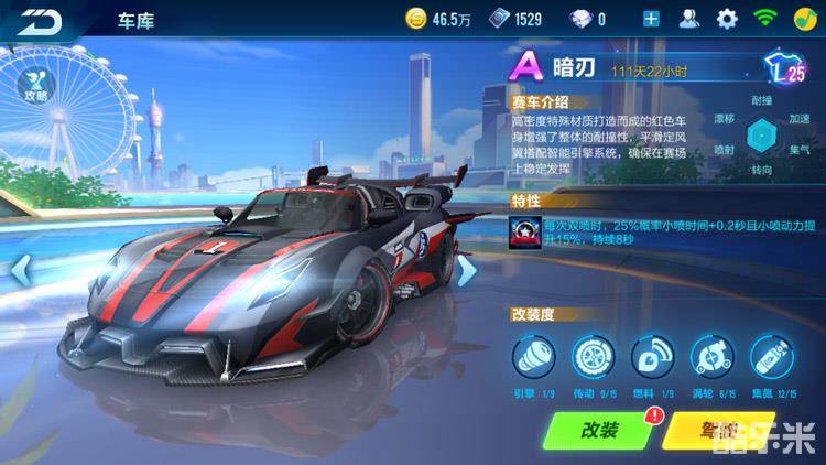 高密度特殊材质打造而成的车身增强了整体的耐撞性,平滑定风翼搭配智能引擎系统,确保在赛场上稳定发挥,暗刃的各项性能较为均衡,其中耐撞和转向能力最为突出。