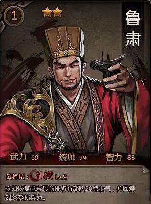 鲁肃队是目前游戏中爆发最高的队形,也是中战目前逆袭顶战最好的队形,能打上述的兵书于吉诸葛队跟张角队。