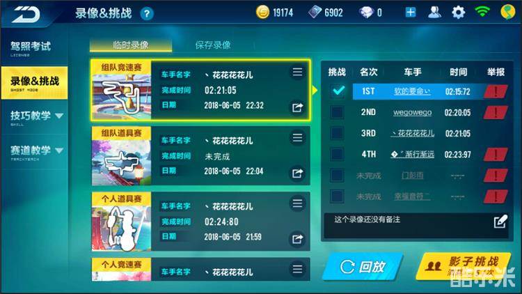 大家在进行过比赛之后,系统会自动录下最近20场比赛的录像,大家可以选择将其永久保存下来。录像可以用来观看,通过观看录像发现自己的不足以及学习他人的技巧,或者是直接挑战,可以挑战录像中自己的对手,也可以挑战录像中的自己,当然只能选择挑战录像中已完成的角色,通过不断挑战自己和对手,大家的技术一定会得到飞速的进步。