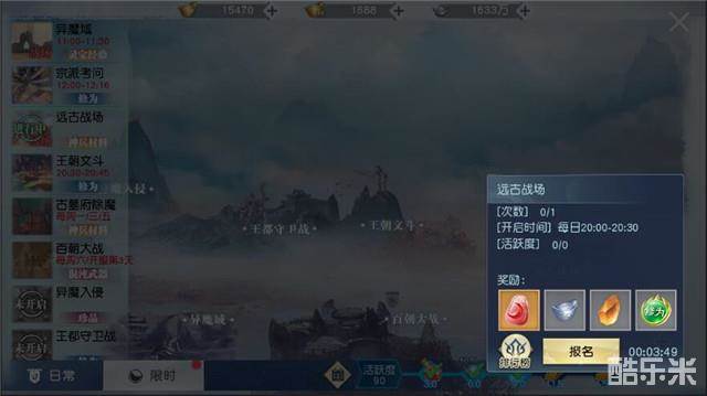 想要参与这个远古战场活动,首先大家要把元力等级提升到110级,这是硬性要求,达不到等级的话就不要想了,毕竟远古战场里面很危险,等级太低了在里面生存不下去。另外就是远古战场只有在每天的20:00~20:30才会开启,每天只开半个小时,想要参与就要把握好时间了。