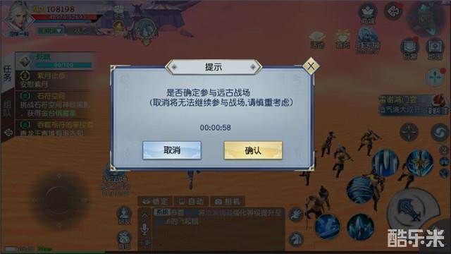 活动开始的时候,会有五分钟的报名时间。报名时间结束后,已经报名的玩家会收到一个提示,询问大家是否确定参与远古战场,确定后就会直接进入远古战场地图,这里最需要注意的就是报名的时间,如果错过报名的时间,远古战场入口关闭,就算貂爷我也无法将你们送进去。