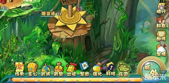 所有玩家事务都可以在下方看到,包括任务,武将,背包,合成,庄园,好友,军情等等。