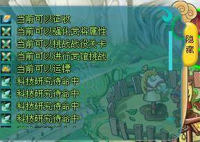 左右两边的活动页面可以更加直观地查看玩家的队列使用情况和当前所接受的任务,可以按隐藏把他们隐藏起来。