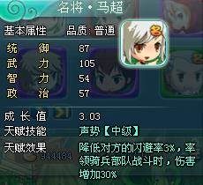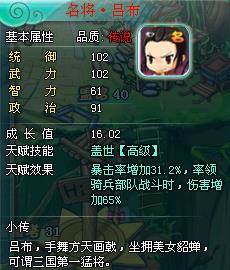 武将有白,绿,蓝,紫,橙,红六档品质,红色品质的武将成长最高,而且比白色高出许多。