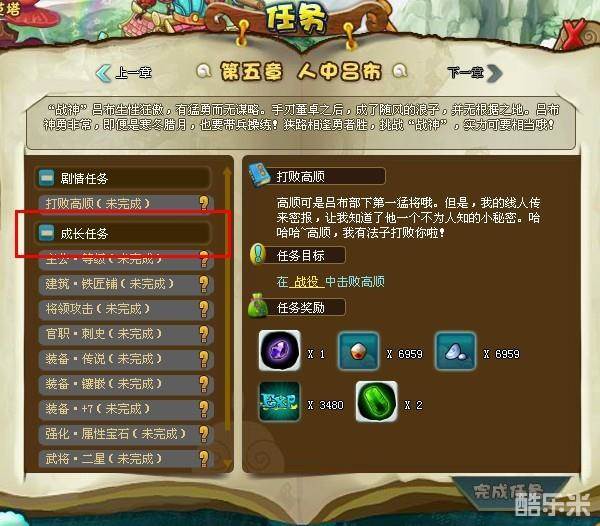 成长任务是基于剧情任务暂时无法完成,便可进行支线任务,虽然没有剧情任务能提供丰厚经验及资源的的优势,但成长任务可获得多样的商城道具以及宝石,可谓是至关重要的。