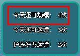 在运镖过程中可以劫镖,劫镖成功可以从其他玩家处获得额外的银两,数量为对方玩家获得银两的1/10,每天可以劫4次镖,但是每次劫镖之间有20分钟的冷却时间。