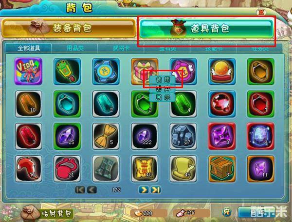 道具分为几大类型用品类型:如礼包等,可在背包内直接使用