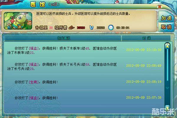 点击医馆建筑即可打开医馆操作界面。医馆等级越高,能够恢复的伤兵数量就会越大。