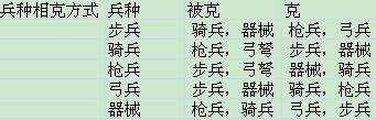 因兵种有相克属性,具体如下图,所以当攻打据点失败时可以考虑更换当前所带的兵种,这样应该会轻松不少。现有的5类兵种攻打副本时,推荐使用远程兵种,即弓兵及器械,弓兵攻速快,器械攻击高,碰到近战兵种几乎都可以将敌方部队在到达自己面前大量绞杀亦或是全灭。
