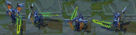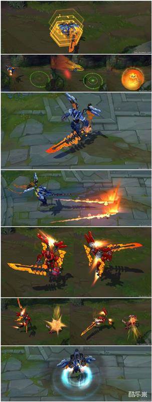 模型的风格很机械化,模型很好看哦,被动特效:恢复的时候方便方块特效伴随给人的感觉就是机甲正在复活中哦,Q技能击飞下去是一个大大的蜂窝风格的特效光圈,W技能武器手中颜色变化,绿色剑刃代表着吸血,红色剑刃代表耗血。E技能的变成蜂窝风格的减速特效痕迹,R从蓝色的剑魔机甲变成红色的很容易区分。回城时他会变为一架喷气式飞机这个好6有没有。性价比高,推荐入手。