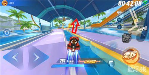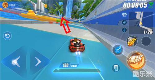 这处捷径要注意车身位置,进入跳台时不建议使用氮气,避免速度过快掉入水中(要绕很大一圈)。
