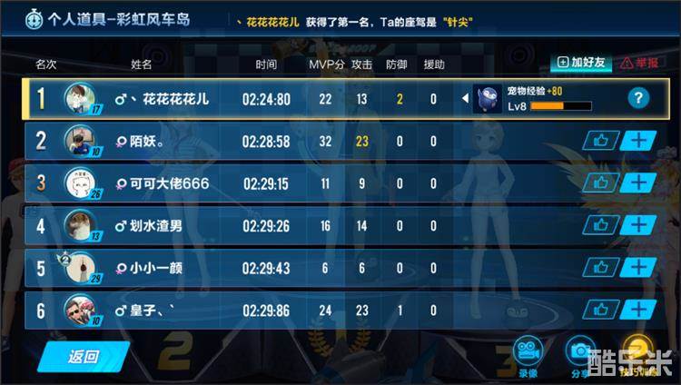 所以建议妹子们想要取得好的排名就多去玩玩道具模式,因为哪怕是大神,在道具模式里面如果运气不好,也只能落得一个垫底的下场。如果妹子们想要取得更好的成绩的话,建议玩组队道具赛,因为组队道具赛只有输赢,没有排名,在这里面即使自己失利,协助队友冲线也有机会赢得比赛,所以获胜的几率更高。