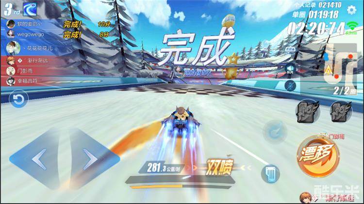跟竞速模式相比,道具模式对技术的要求要低一些,毕竟不需要集氮气,所以对漂移这些操作的要求也没有那么高,但是双喷这些基础的操作还是必要的,因为能够迅速扩大优势。道具赛其实含有一定的运气成分,通常来说,排名靠前的玩家更希望获得护盾类的道具,而排名靠后的玩家则更希望获得攻击类的道具,但是如果运气不好的话,结果就会恰恰相反。