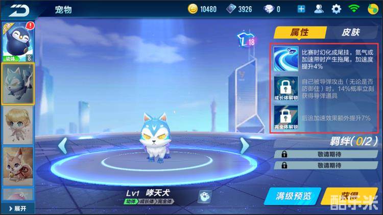 肯定有很多人以为新宠物出来了,肯定会和丘比特有羁绊属性了,事实上并没有,不仅没有和丘比特有羁绊属性,和其它现有宠物同样没有羁绊属性,和丘比特一样,两个羁绊属性上都是写着“敬请期待”。