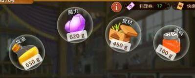 以下数据的顺序是:食油—魔力—食材—调料