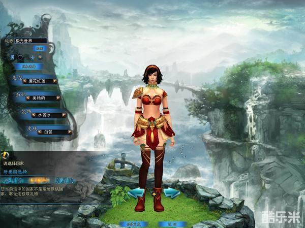 在极光世界中,1个账号最多可创建4个角色,分为3个国家,晨星国、映月国、烈日国,在角色创建的界面上分别有发型、面部、装饰、和皮肤供玩家选择,选择好自己喜欢的样式,输入自己的游戏昵称后,点击“创建完成”即可开始极光之旅。