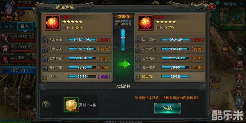 每个职业根据自己的需求选择属性,属性分为普通、优秀、杰出、卓越、完美、史诗六个等级。在洗炼途中,如果洗出了完美或史诗的属性,个人觉得可以选择锁定了,每锁定一个属性,所需灵引会相应增加,锁定1个到4个属性洗炼一次分别对应的是2个、4个、8个、16个灵引。