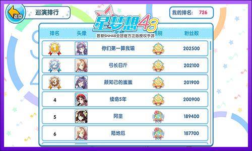 PK成功增加粉丝数,PK失败减少粉丝数。巡演排行榜根据玩家积累的粉丝数排列,粉丝数越多组别越高。你会是下一个上榜的大佬吗?!