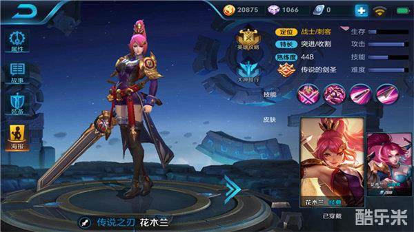 花木兰是一个可以双形态切换的战士,双剑形态时的花木兰较为灵活,一技能可以位移,二技能可以对敌人造成减速效果。重剑形态时花木兰拥有霸体和免伤效果,并且拥有了高爆发能力。两个形态相结合使花木兰成为一个既能切后排又能站前排抗伤害的英雄。在这个阵容中花木兰前期在线上稳定发育即可,后期团战时花木兰应先站在我方前排保护我方输出英雄,适当时机可与韩信一起切入敌方后排击杀敌方C位英雄,王昭君放大招时可以利用双剑形态下的二技能留住敌人。